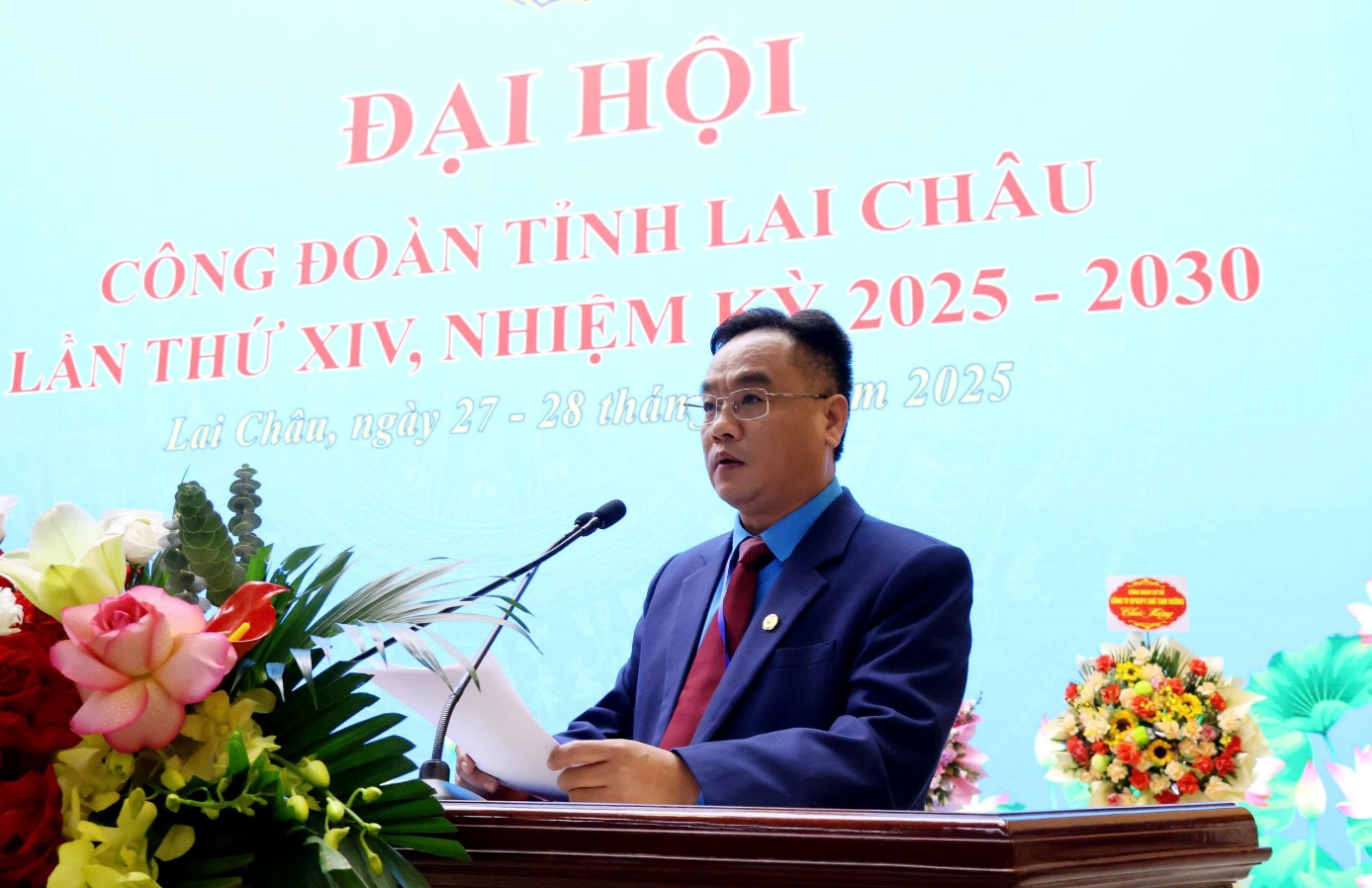 Đại hội XIV Công đoàn tỉnh Lai Châu đã đề mục tiêu tổng quát nhiệm kỳ 2025 – 2030 là “Tập trung đổi mới nội dung và phương thức hoạt động; xây dựng tổ chức Công đoàn vững mạnh toàn diện, có năng lực đáp ứng yêu cầu trong tình hình mới; phát huy tốt vai trò đại diện, chăm lo, bảo vệ quyền và lợi ích hợp pháp, chính đáng của đoàn viên và người lao động; thúc đẩy tinh thần đổi mới sáng tạo, ứng dụng mạnh mẽ chuyển đổi số trong quản lý và tổ chức phong trào; xây dựng đội ngũ cán bộ, đoàn viên có bản lĩnh, trách nhiệm, chuyên nghiệp; góp phần quan trọng vào mục tiêu xây dựng tỉnh Lai Châu phát triển xanh, nhanh, bền vững trong giai đoạn tới”. Đồng thời, xác định 03 khâu đột phá, đó là: