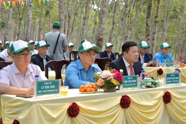 Đồng chí Lương Xuân Trường - Chủ tịch LĐLĐ tỉnh dự lễ ra quân thu hoạch mủ cao su năm 2026 của Công ty Cổ phần Cao su Lai Châu II.